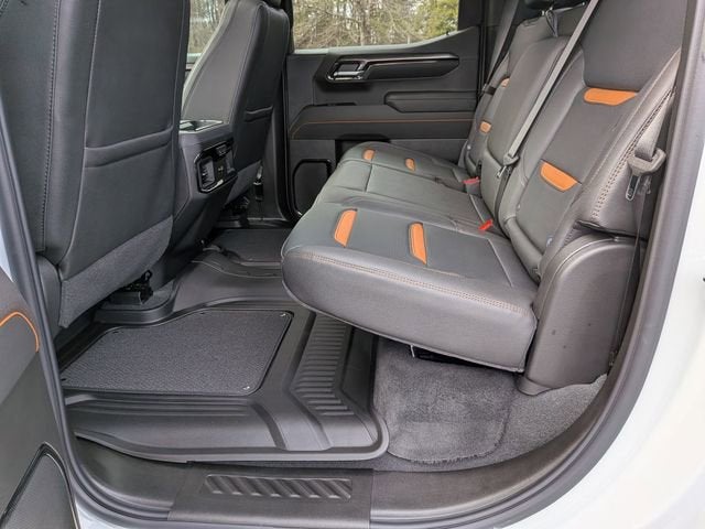 10-Speed Automatic, 4WD, Jet Black With Kalahari Accents Leather, 10-Way Power Driver Seat Adjuster w/Lumbar, 10-Way Power Passenger Seat Adjuster w/Lumbar, 120-Volt Bed Mounted Power Outlet, 120-Volt Interior Power Outlet, 2 Charge/Data USB Ports Inside Center Console, 2 Type-C Charge-Only Rear USB Ports, 2 USB Ports, 220 Amp Alternator, 3.23 Rear Axle Ratio, 4-Wheel Disc Brakes, 7 Speakers, ABS brakes, Air Conditioning, Alloy wheels, AM/FM radio: SiriusXM with 360L, Apple CarPlay/Android Auto, AT4 Preferred Package, AT4 Premium Package, Auto High-beam Headlights, Auto-dimming door mirrors, Auto-dimming Rear-View mirror, Auto-Locking Rear Differential, Automatic Emergency Braking, Automatic temperature control, Bed View Camera, Black Chrome Grille Insert Bars, Block heater, Brake assist, Buckle to Drive, Bumpers: body-color, Color-Keyed Carpeting Floor Covering, Compass, Deep-Tinted Glass, Delay-off headlights, Driver door bin, Driver Memory, Driver vanity mirror, Dual front impact airbags, Dual front side impact airbags, Electric Rear-Window Defogger, Electronic Stability Control, Emergency communication system: OnStar, Engine Block Heater, Floor-Mounted Center Console, Following Distance Indicator, Forward Collision Alert, Front anti-roll bar, Front Bucket Seats, Front Center Armrest, Front dual zone A/C, Front fog lights, Front License Plate Kit, Front Pedestrian Braking, Front Prem Floor Liners w/Removable Carpet Insert, Front Rain-Sensing Wipers, Front reading lights, Front wheel independent suspension, Fully automatic headlights, HD Surround Vision, Heated 2nd Row Outboard Seats, Heated door mirrors, Heated Driver & Front Outboard Passenger Seating, Heated front seats, Heated rear seats, Heated steering wheel, Heavy-Duty Air Filter, Hill Descent Control, Hitch Guidance, Hitch View, Illuminated entry, In-Vehicle Trailering System App, Integrated Trailer Brake Controller, IntelliBeam Automatic High Beam On/Off, Keyless Open & Start, Lane Keep Assist w/Lane Departure Warning, LED Cargo Area Lighting, Low tire pressure warning, Memory seat, Multicolor 15 Diagonal Head-Up Display, Navigation System, Occupant sensing airbag, Off-Road High Clearance Step (LPO), Off-Road Suspension, OnStar Services Capable, Outside temperature display, Overhead airbag, Overhead console, Panic alarm, Passenger door bin, Passenger vanity mirror, Perforated Front Leather Seat Trim, Perimeter Lighting, Power Door Locks, Power door mirrors, Power driver seat, Power Front Passenger Windows w/Express Up/Down, Power Front Windows w/Driver Express Up/Down, Power passenger seat, Power Rake & Telescoping Steering Column, Power Rear Windows w/Express Down, Power Sliding Rear Window w/Rear Defogger, Power steering, Power Sunroof, Power windows, Preferred Equipment Group 4SB, Premium Bose 7-Speaker Sound System, Push Button Start, Radio data system, Radio: Premium GMC Infotainment Audio System, Rain sensing wipers, Rear Camera Mirror, Rear Cross Traffic Braking, Rear Pedestrian Detection, Rear Prem Floor Liners w/Removable Carpet Insert, Rear reading lights, Rear seat center armrest, Rear step bumper, Rear Wheelhouse Liners, Rear window defroster, Red Recovery Hooks, Remote keyless entry, Remote Vehicle Starter System, Safety Alert Seat, Security system, SiriusXM w/360L Trial Subscription, Speed control, Speed-sensing steering, Split folding rear seat, Spray-On Pickup Bedliner w/GMC Logo, Steering Wheel Audio Controls, Steering wheel mounted audio controls, Tachometer, Technology Package, Telescoping steering wheel, Theft Deterrent System (Unauthorized Entry), Tilt steering wheel, Traction control, Trailer Camera Provisions, Trailer Side Blind Zone Alert, Trailering Package, Trip computer, Ultrasonic Front & Rear Park Assist, Universal Home Remote, Variably intermittent wipers, Ventilated Driver & Front Passenger Seats, Ventilated front seats, Voltmeter, Wheels: 20 x 9 Machined Aluminum, Wi-Fi Hotspot Capable