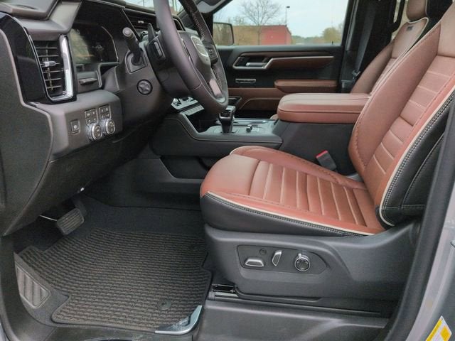 10-Speed Automatic, 4WD, Alpine Umber Leather, 12 Speakers, 120-Volt Bed Mounted Power Outlet, 120-Volt Interior Power Outlet, 16-Way Power Driver Seat Adjuster w/Lumbar, 16-Way Power Passenger Seat Adjuster w/Lumbar, 170 Amp Alternator, 2 Charge/Data USB Ports Inside Center Console, 2 Type-C Charge-Only Rear USB Ports, 2 USB Ports, 220 Amp Alternator, 3.23 Rear Axle Ratio, 4-Wheel Disc Brakes, ABS brakes, Adaptive suspension, Air Conditioning, Alloy wheels, AM/FM radio: SiriusXM with 360L, Apple CarPlay/Android Auto, Auto High-beam Headlights, Auto-dimming door mirrors, Auto-dimming Rear-View mirror, Auto-Locking Rear Differential, Automatic temperature control, Bed View Camera, Bose Premium Series w/12-Speaker System, Brake assist, Buckle to Drive, Bumpers: body-color, Chrome Recovery Hooks, Color-Keyed Carpeting Floor Covering, Compass, Deep-Tinted Glass, Delay-off headlights, Denali Premium Suspension w/Adaptive Ride Control, Driver door bin, Driver Memory, Driver vanity mirror, Dual Active Exhaust, Dual Exhaust System, Dual front impact airbags, Dual front side impact airbags, Electric Rear-Window Defogger, Electronic Stability Control, Emergency communication system: OnStar, Engine Block Heater, Enhanced Automatic Emergency Braking, Floor-Mounted Center Console, Following Distance Indicator, Forward Collision Alert, Front anti-roll bar, Front Bucket Seats, Front Center Armrest, Front dual zone A/C, Front fog lights, Front Pedestrian Braking, Front Rain-Sensing Wipers, Front reading lights, Front wheel independent suspension, Full Grain Leather Seat Trim, Fully automatic headlights, Garage door transmitter, Genuine wood console insert, Genuine wood dashboard insert, Genuine wood door panel insert, HD Surround Vision, Heads-Up Display, Heated 2nd Row Outboard Seats, Heated door mirrors, Heated Driver & Front Outboard Passenger Seating, Heated front seats, Heated rear seats, Heated steering wheel, Heavy-Duty Air Filter, High Gloss Black Header w/Signature Denali Grille, Hill Descent Control, Hitch Guidance, Hitch View, Illuminated entry, In-Vehicle Trailering System App, Integrated Trailer Brake Controller, IntelliBeam Automatic High Beam On/Off, Keyless Open & Start, LED Cargo Area Lighting, Low tire pressure warning, Memory seat, Multicolor 15 Diagonal Head-Up Display, MultiPro Tailgate Audio System by Kicker (LPO), Navigation System, Occupant sensing airbag, OnStar Services Capable, Outside temperature display, Overhead airbag, Overhead console, Panic alarm, Passenger door bin, Passenger vanity mirror, Perimeter Lighting, Power Door Locks, Power door mirrors, Power driver seat, Power Front Passenger Windows w/Express Up/Down, Power Front Windows w/Driver Express Up/Down, Power moonroof, Power passenger seat, Power Rake & Telescoping Steering Column, Power Rear Windows w/Express Down, Power Sliding Rear Window w/Rear Defogger, Power steering, Power Sunroof, Power windows, Preferred Equipment Group 5SB, Push Button Start, Radio data system, Radio: Premium GMC Infotainment Audio System, Rain sensing wipers, Rear Cross Traffic Braking, Rear Pedestrian Detection, Rear reading lights, Rear seat center armrest, Rear step bumper, Rear Wheelhouse Liners, Rear window defroster, Remote keyless entry, Remote Vehicle Starter System, Safety Alert Seat, Security system, SiriusXM w/360L Trial Subscription, Speed control, Speed-sensing steering, Split folding rear seat, Spray-On Pickup Bedliner w/GMC Logo, Steering Wheel Audio Controls, Steering wheel mounted audio controls, Super Cruise, Tachometer, Telescoping steering wheel, Theft Deterrent System (Unauthorized Entry), Tilt steering wheel, Traction control, Trailer Camera Provisions, Trailer Side Blind Zone Alert, Trailer Tire Pressure Monitor System, Trailering Package, Trip computer, Ultrasonic Front & Rear Park Assist, Universal Home Remote, Variably intermittent wipers, Ventilated Driver & Front Passenger Seats, Ventilated front se