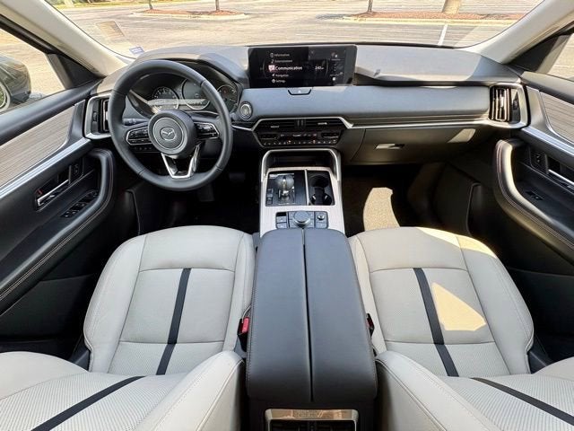 3rd row seats: bench, 4-Wheel Disc Brakes, 8 Speakers, ABS brakes, Air Conditioning, Alloy wheels, AM/FM radio, Auto High-beam Headlights, Automatic temperature control, Brake assist, Bumpers: body-color, Cargo Blocks, Compass, Delay-off headlights, Driver door bin, Driver vanity mirror, Dual front impact airbags, Dual front side impact airbags, E911 Automatic Emergency Notification, Electronic Stability Control, Emergency communication system: MAZDA CONNECT, Exterior Parking Camera Rear, Four wheel independent suspension, Front anti-roll bar, Front Bucket Seats, Front Center Armrest w/Storage, Front dual zone A/C, Front reading lights, Fully automatic headlights, Heated door mirrors, Heated front seats, Heated rear seats, Heated steering wheel, Heated/Ventilated Front Bucket Seats, Illuminated entry, Infotainment System Voice Command, Knee airbag, Leather Seat Trim, Leather Shift Knob, Leather steering wheel, Low tire pressure warning, Machine Gray Metallic Paint Charge, Mazda Connected Services, Memory seat, Occupant sensing airbag, Outside temperature display, Overhead airbag, Overhead console, Panic alarm, Passenger door bin, Passenger vanity mirror, Power door mirrors, Power driver seat, Power Liftgate, Power moonroof, Power passenger seat, Power steering, Power windows, Radio Broadcast Data System Program Information, Radio data system, Radio: : AM/FM w/HD/8-Speaker Sound System, Rain sensing wipers, Rear air conditioning, Rear anti-roll bar, Rear reading lights, Rear seat center armrest, Rear window defroster, Rear window wiper, Remote keyless entry, SMS Text Msg Audio Delivery and Reply, Speed control, Speed-sensing steering, Split folding rear seat, Spoiler, Steering wheel mounted audio controls, Tachometer, Telescoping steering wheel, Tilt steering wheel, Traction control, Trip computer, Turn signal indicator mirrors, Variably intermittent wipers, Ventilated front seats, Wheel Locks, Wheels: 21 x 9.5J Silver Metallic Aluminum Alloy. Recent Arrival! 23/28 City/Highway MPG
